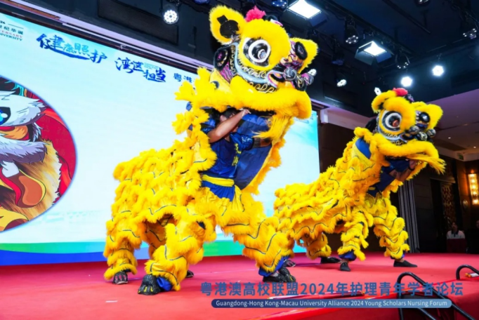 At the opening ceremony, there was a lion dance performance and a chorus of "Bay Area is Hometown" brought by students from 17 alliance universities, which brought the atmosphere to a climax, in order to celebrate the successful convening of the 2024 Nursing Young Scholars Forum of the Guangdong-Hong Kong-Macao University Alliance, and jointly present the century birthday of Sun Yat-sen University!