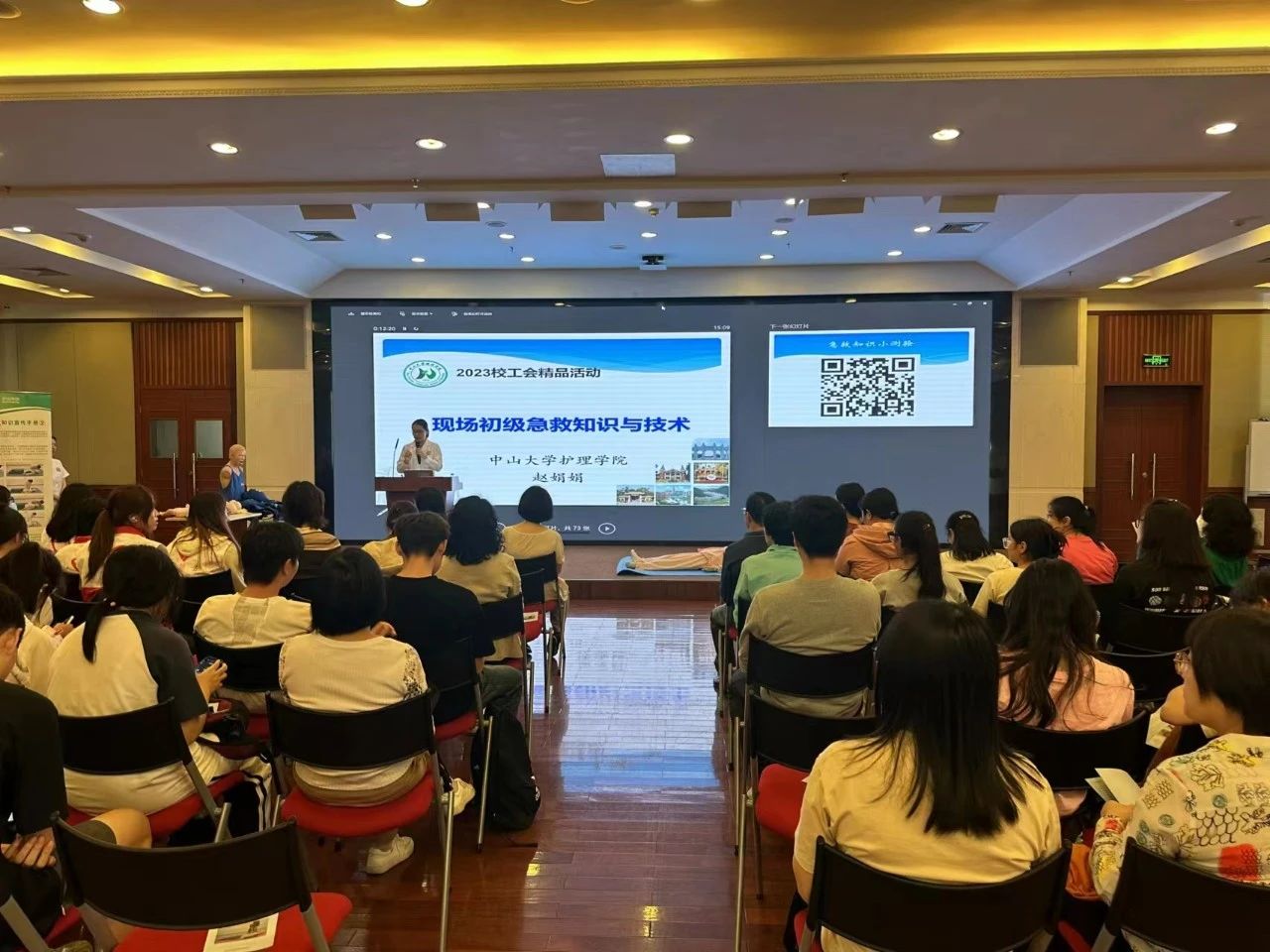 分工会承办的精品活动“社会公众急救知识与技术培训”在南校园岭南学院MBA大楼1002讲学厅举办,来自南校园的师生近100名报名参加了活动。