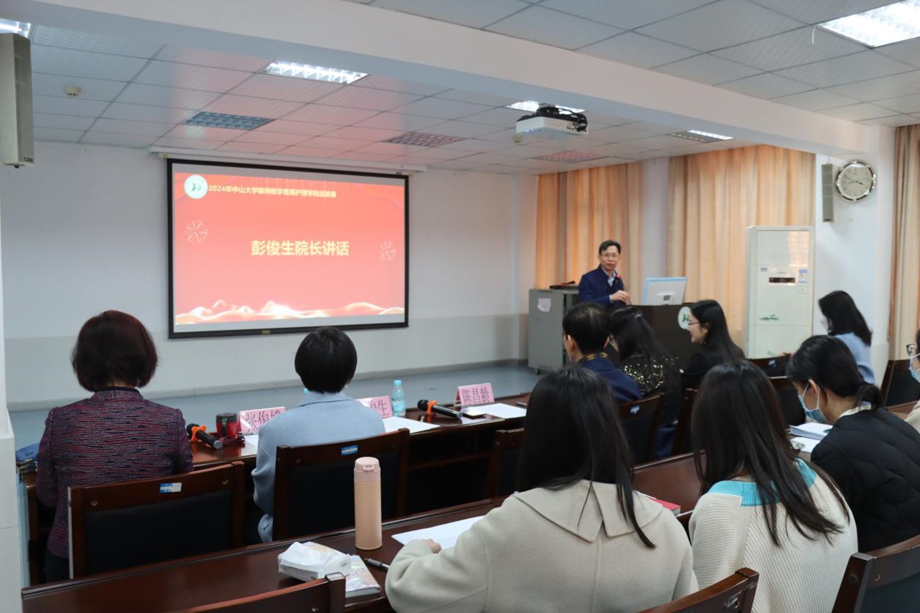 首先,彭俊生院长在致辞中表示,教学竞赛是推动教学质量提高的重要环节,学院每年举办教学竞赛,目的在于不断推动教学方法的提升,让更多的学生受益,同时也是为全院教师提供互动交流、资源共享、成果展示的平台。他对参加大赛的评委表示衷心的感谢,并预祝全体参赛选手取得好成绩。接着,万丽红副院长介绍了本次教学竞赛的规则,比赛正式开始。