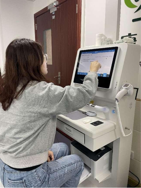 3月6日上午, 18jav 持续深化“我为群众办实事”实践活动,结合三八节活动,立足学科特色, 18jav 临床技能中心向全体女教职工开放使用K3健康体检一体机进行健康检查和健康管理,实实在在提升学院女教职工的获得感、幸福感和安全感。